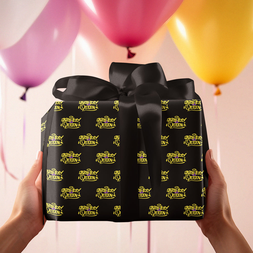 Wrapping Culture Flat Gift Wrapping Paper Set, 4 Sheets, “Birthday Queen” Wrapping Paper Shiny Luxury Gift Wraps
