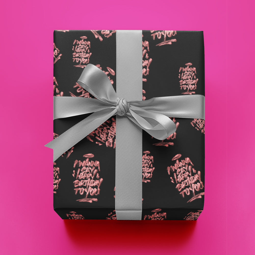 Wrapping Culture Flat Gift Wrapping Paper Set, 4 Sheets, “I Wanna Say Happy Birthday to You” Wrapping Paper Shiny Luxury Gift Wraps